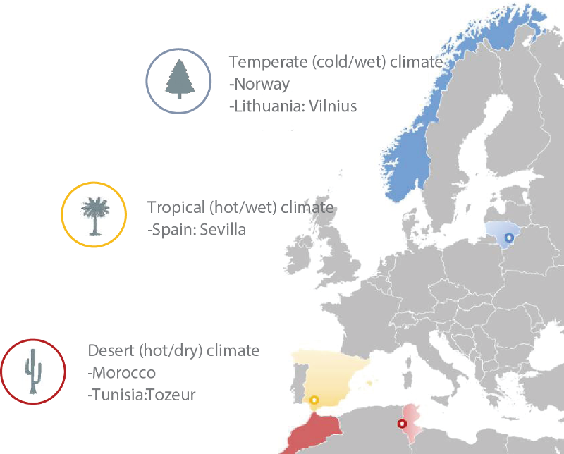 A site at Vilnius (Lithuania) and a site at Norway are selected for this test. The aim of this task is to evaluate module innovations developed in this project under cold and snowy environment typical of northern part of Europe. The following systems will be installed and instrumented: